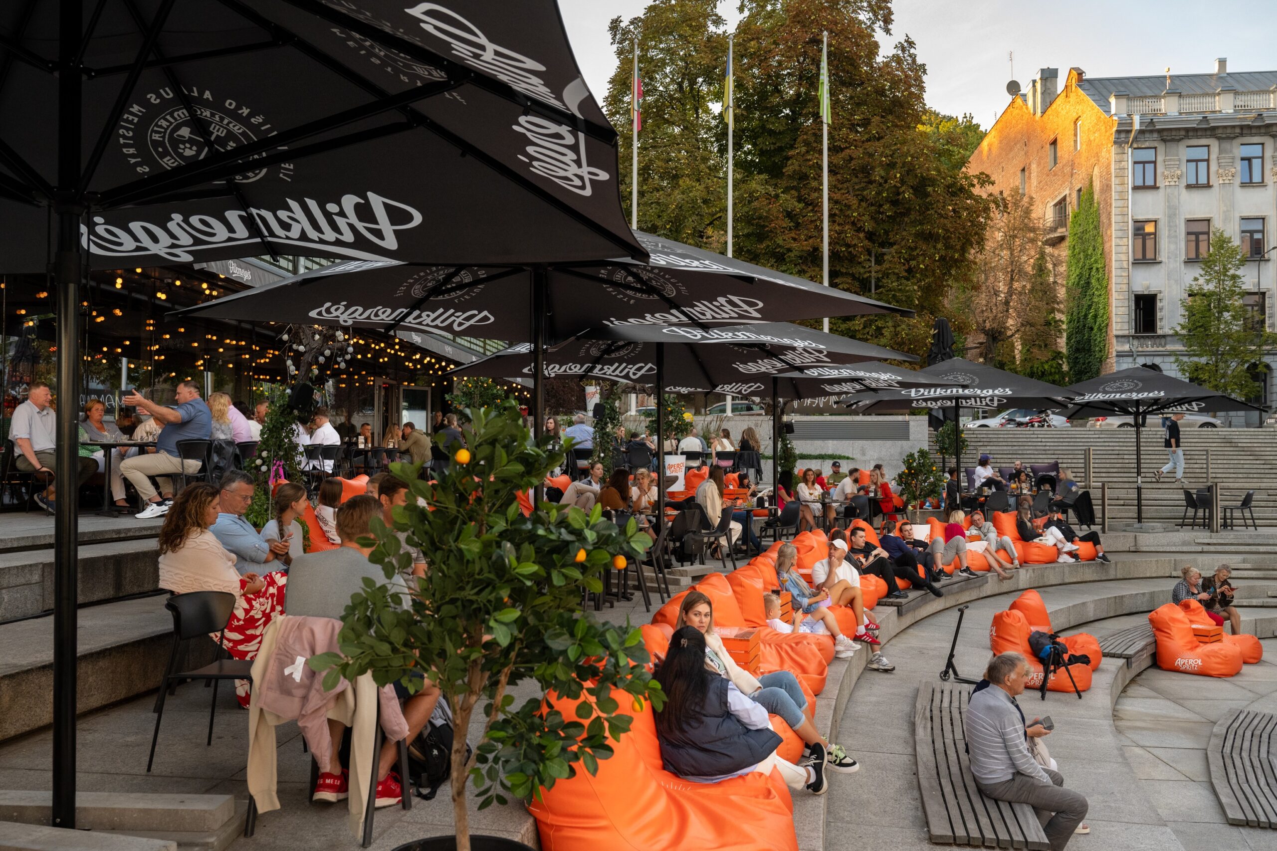 Klientų pamėgta lauko terasa su amfiteatru, atsiveriančiu į Vienybės aikštę, vasaros metu tampa gyvybingu traukos centru, kupinu įvairaus tipo renginių ir šiltos atmosferos.