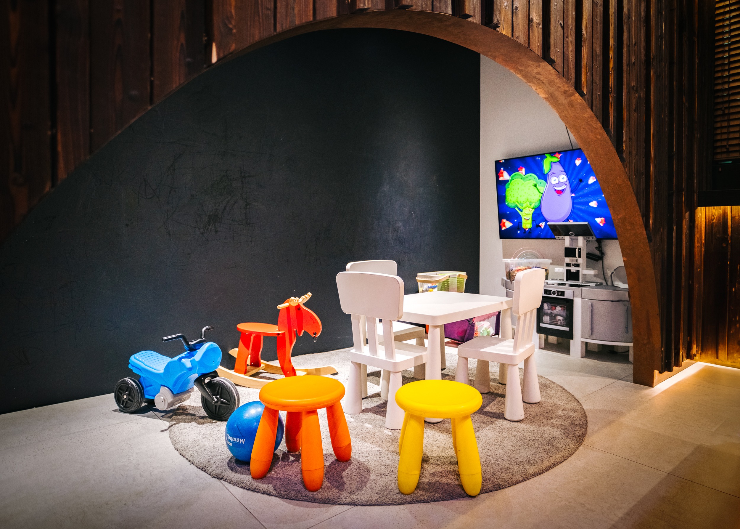 Mažoji salė – jauki, privati erdvė su vaikų kampeliu, puikiai pritaikyta nedideliems pasisėdėjimams iki 30 asmenų, kur galėsite mėgautis jaukia ir ramia atmosfera.